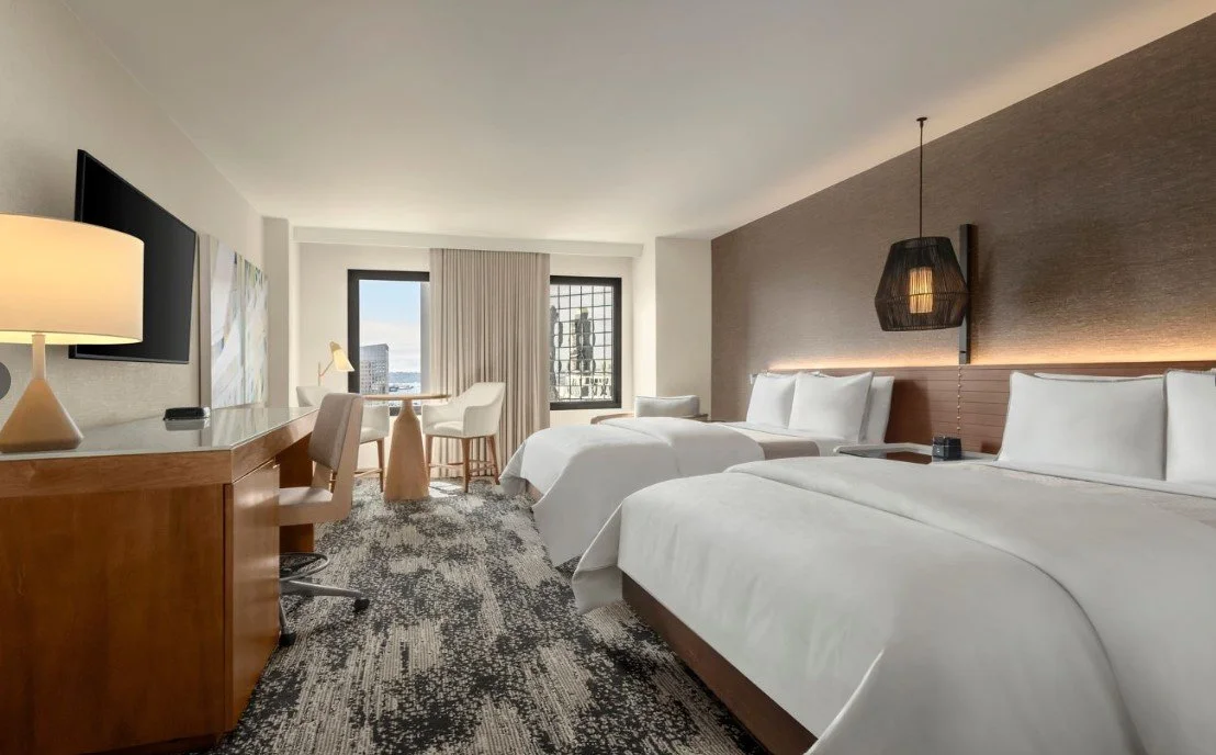 Relax in the comfort of our well-appointed King Bed or 2 Queen Bedded rooms with views of the City. Traditional Rooms are located throughout the hotel and views cannot be guaranteed. Rooms come with hairdryer, iron/ironing board, 250 thread count sheets, bathroom amenities, and radio alarm clocks. Rooms with King Bed can accommodate up to two guests and rooms with 2 Queen Beds can accommodate up to four guests.