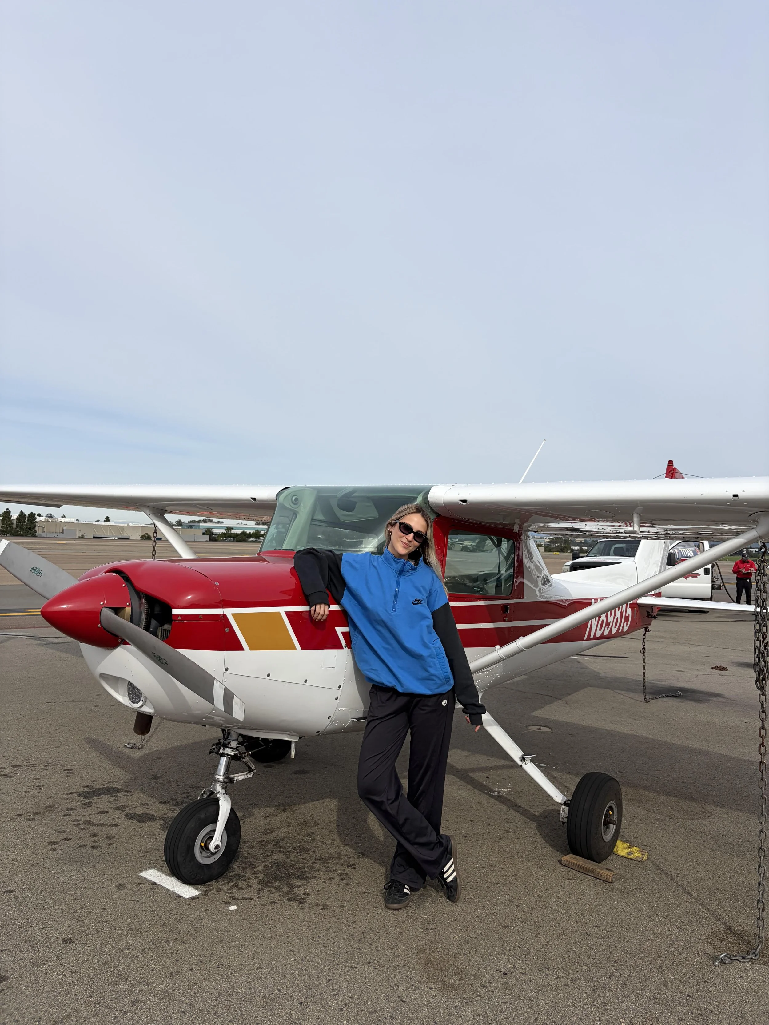 I am currently working on obtaining my Private Pilot License as my first step in pursuing aviation as a career! I graduated from UCSD in 2023 and since then have worked in a variety of different industries from AI start-ups, to law firms, to luxury hospitality. But after going on my discovery flight in October 2025, I knew I found my passion and started training shortly after.